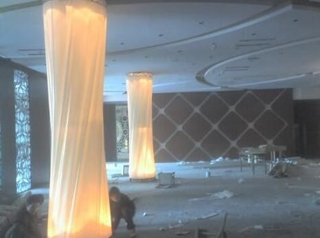 室內(nèi)膜結(jié)構(gòu)所使用的膜材采用特殊的聚氯乙烯材料制成,不含鎘,其防火級(jí)別為B1,通過(guò)一次或多次切割成形,并用高頻焊接完成,再按照在實(shí)地測(cè)量出的天花形狀及尺寸在工廠里生產(chǎn)制作而成。