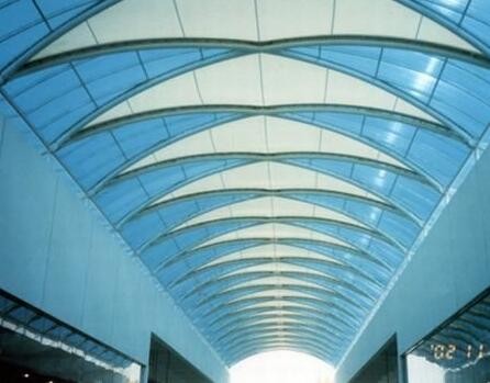 室內(nèi)膜結(jié)構(gòu)與室外膜結(jié)構(gòu)相比,其設(shè)計(jì)及安裝所考慮的主要問(wèn)題基本類似,要審慎對(duì)待、合理設(shè)計(jì),充分考慮現(xiàn)場(chǎng)環(huán)境和施工條件,選擇合適的節(jié)點(diǎn)構(gòu)造形式,保證建筑的合理性及視覺(jué)效果。
